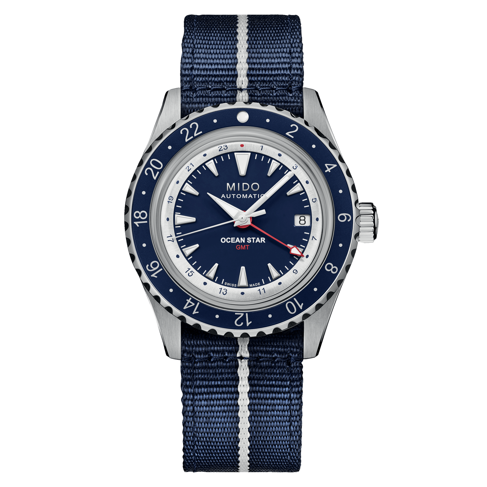 The MIDO Ocean Star GMT 40.5 mm M026.829.18.041.00 is a versatile Swiss-made timepiece that combines professional dive watch specifications with world-time functionality. Its deep blue dial is accented by a matching ceramic bezel and bold GMT markings, allowing wearers to easily track a second time zone. The 40.5 mm stainless steel case, paired with a sporty blue fabric strap, offers both durability and comfort, making it a great option for those searching for “Mido Ocean Star GMT,” “Swiss GMT dive watch,” and “blue dial automatic GMT.”