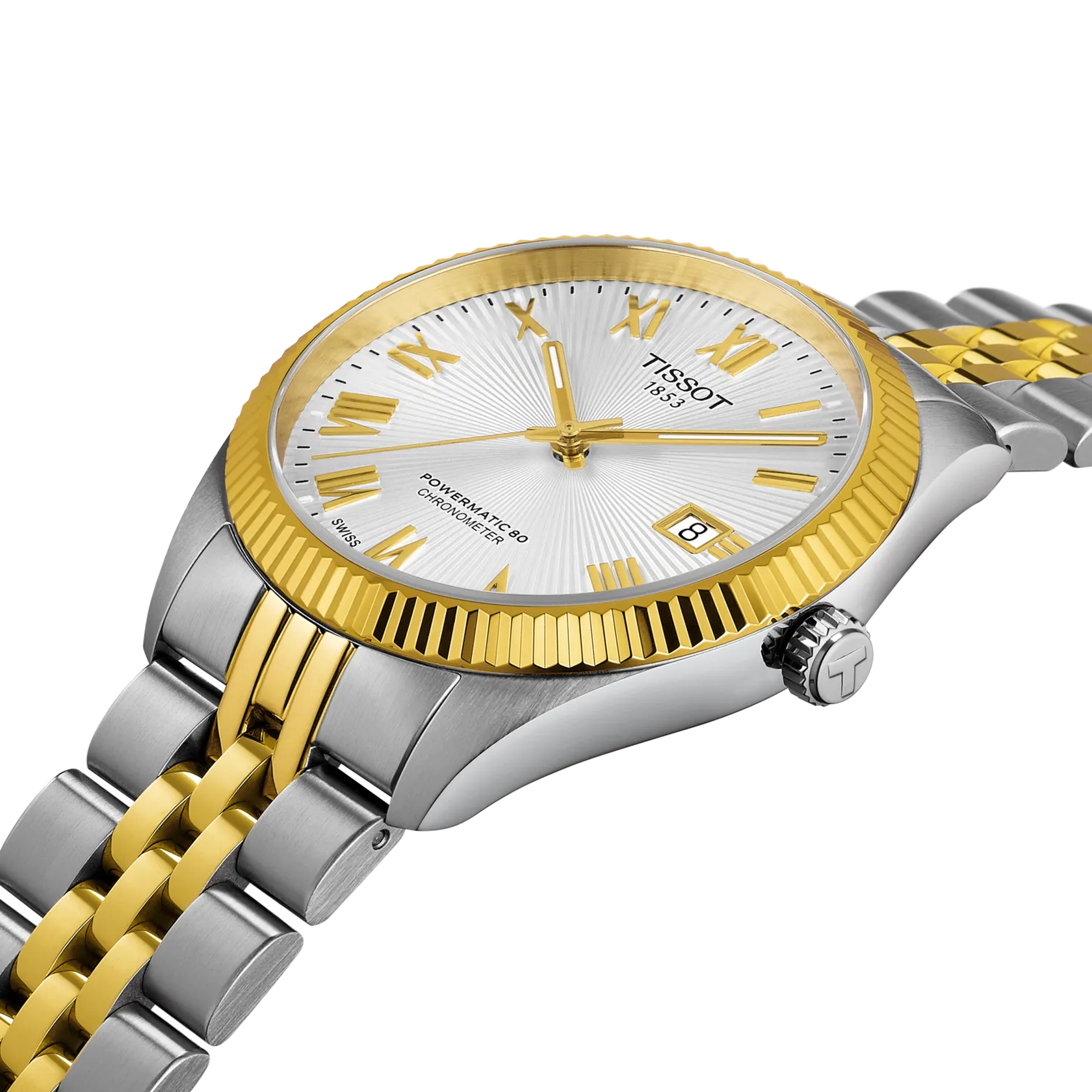 At its heart beats the Powermatic 80 COSC automatic movement, known for its chronometer-certified accuracy and remarkable 80-hour power reserve. This movement reflects Tissot’s dedication to superior watchmaking and reliability, offering exceptional performance that keeps perfect time even after days off the wrist. The dial design—clean, elegant, and detailed with gold-tone hour markers—captures the classic sophistication that defines the Ballade collection.