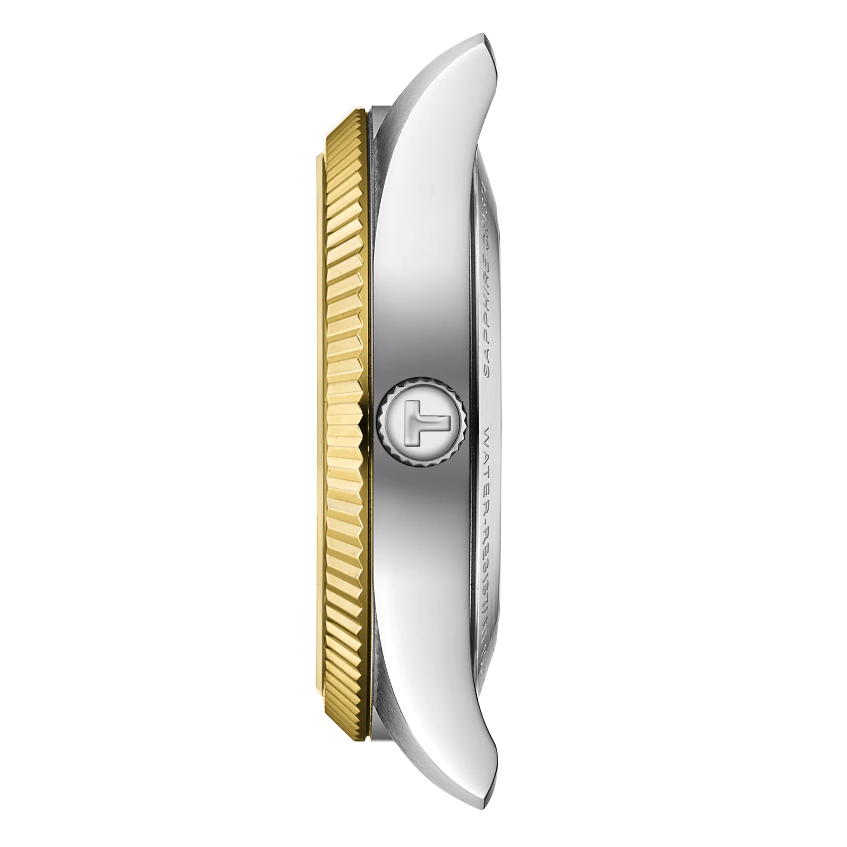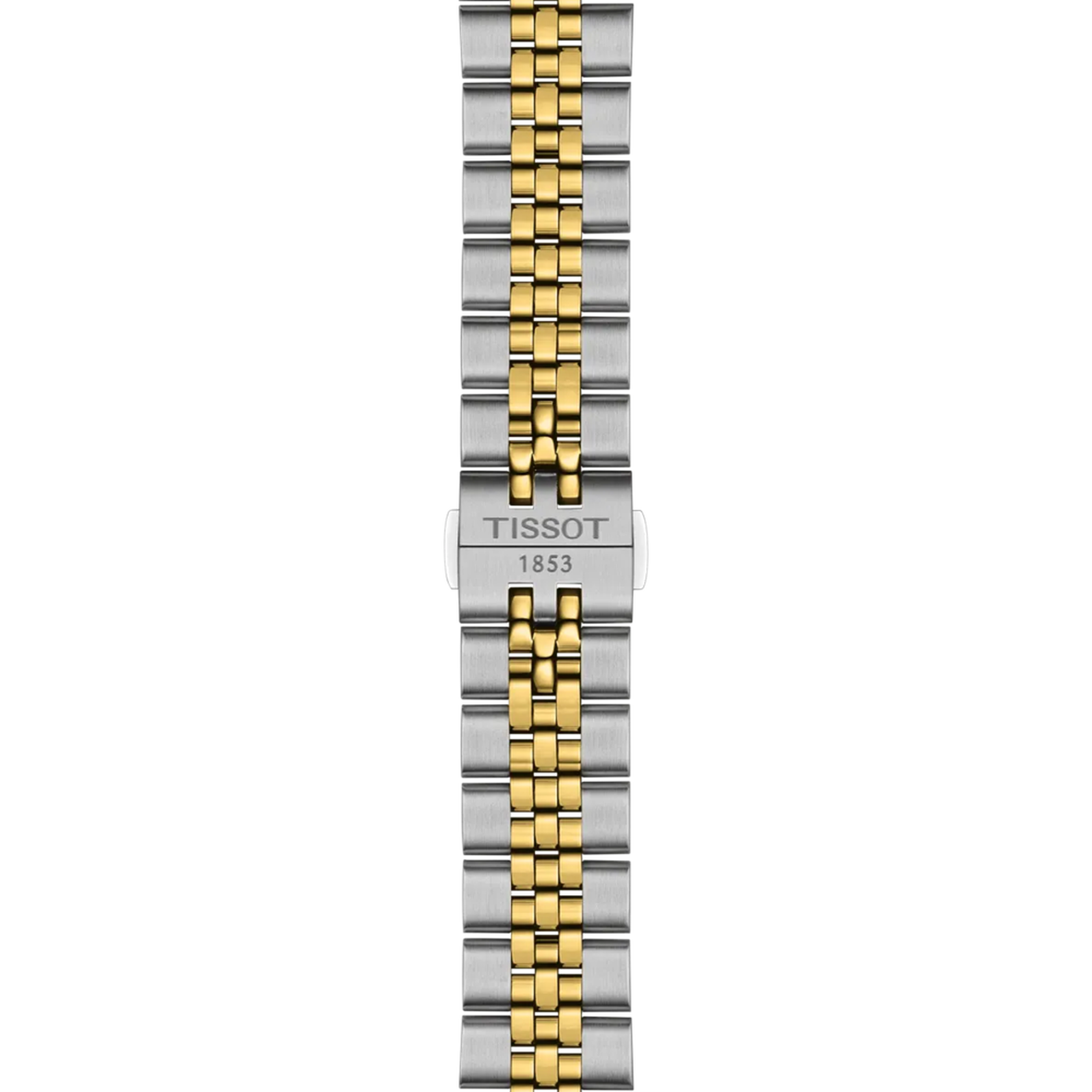 The Tissot Ballade 39 mm T156.408.22.033.00 combines certified precision with timeless two-tone elegance. Crafted in a 39 mm 316L stainless-steel case with yellow-gold PVD accents and a fluted bezel, it features a scratch-resistant sapphire crystal with anti-reflective coating, a see-through caseback, and an interchangeable quick-release bracelet. Its balanced proportions and refined finishing make it an ideal choice for both professional and formal occasions.