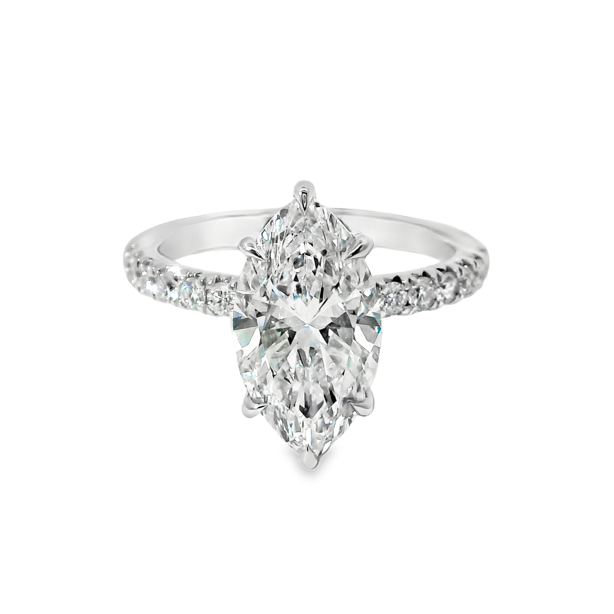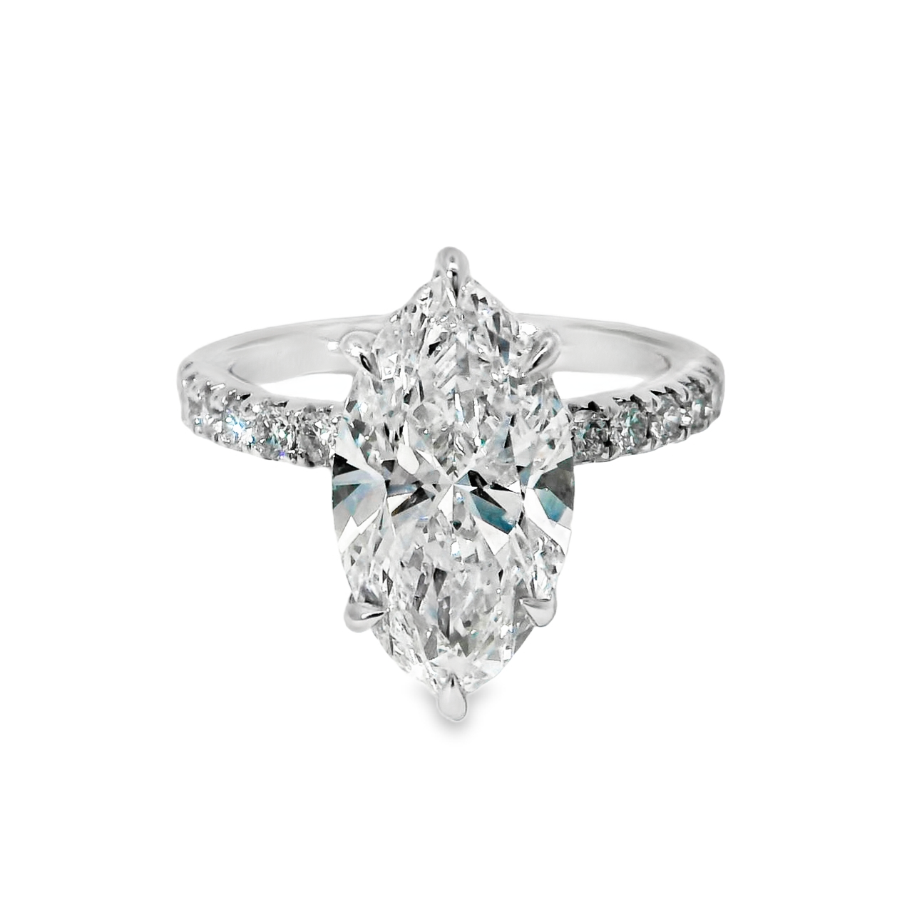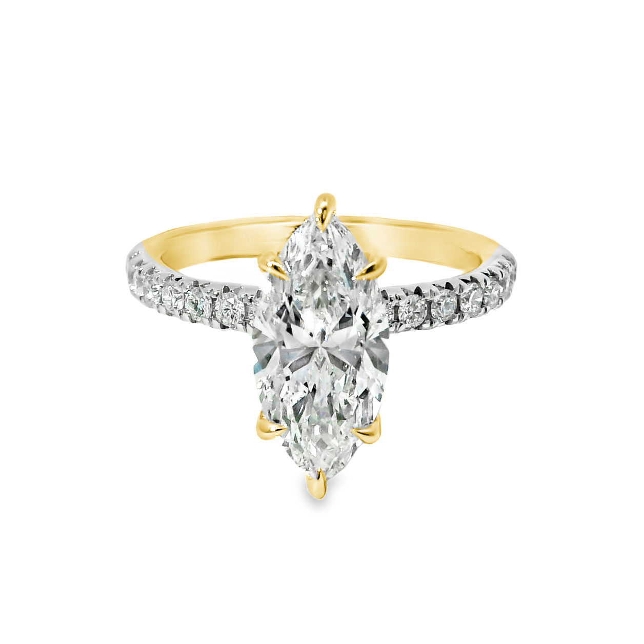14K Gold Marquise Lab Diamond Pavé Engagement Ring