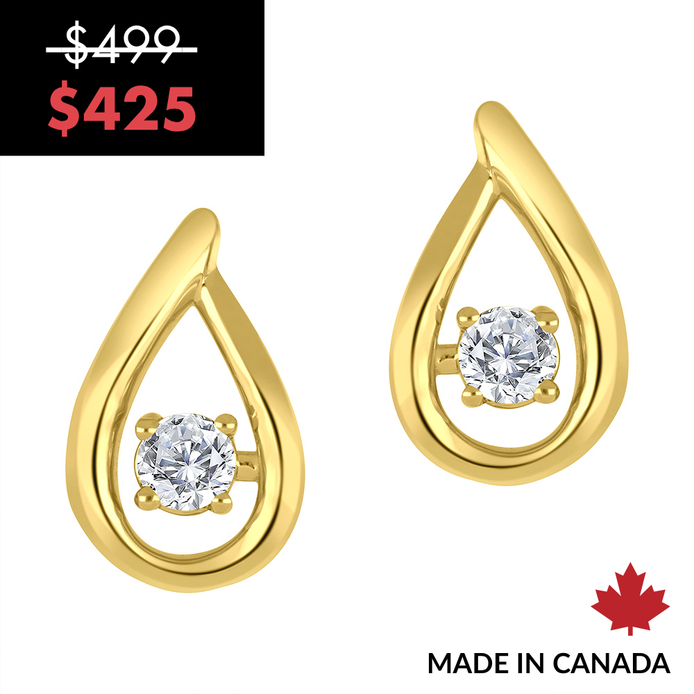 Embrace timeless elegance with these exquisite droplet-shaped earrings. Crafted in lustrous 10K yellow gold, the design delicately features two sparkling lab diamonds, each set in a secure and elegant prong setting. Together, they boast a total carat weight of 0.20, offering a subtle yet sophisticated glow that will effortlessly elevate any look.