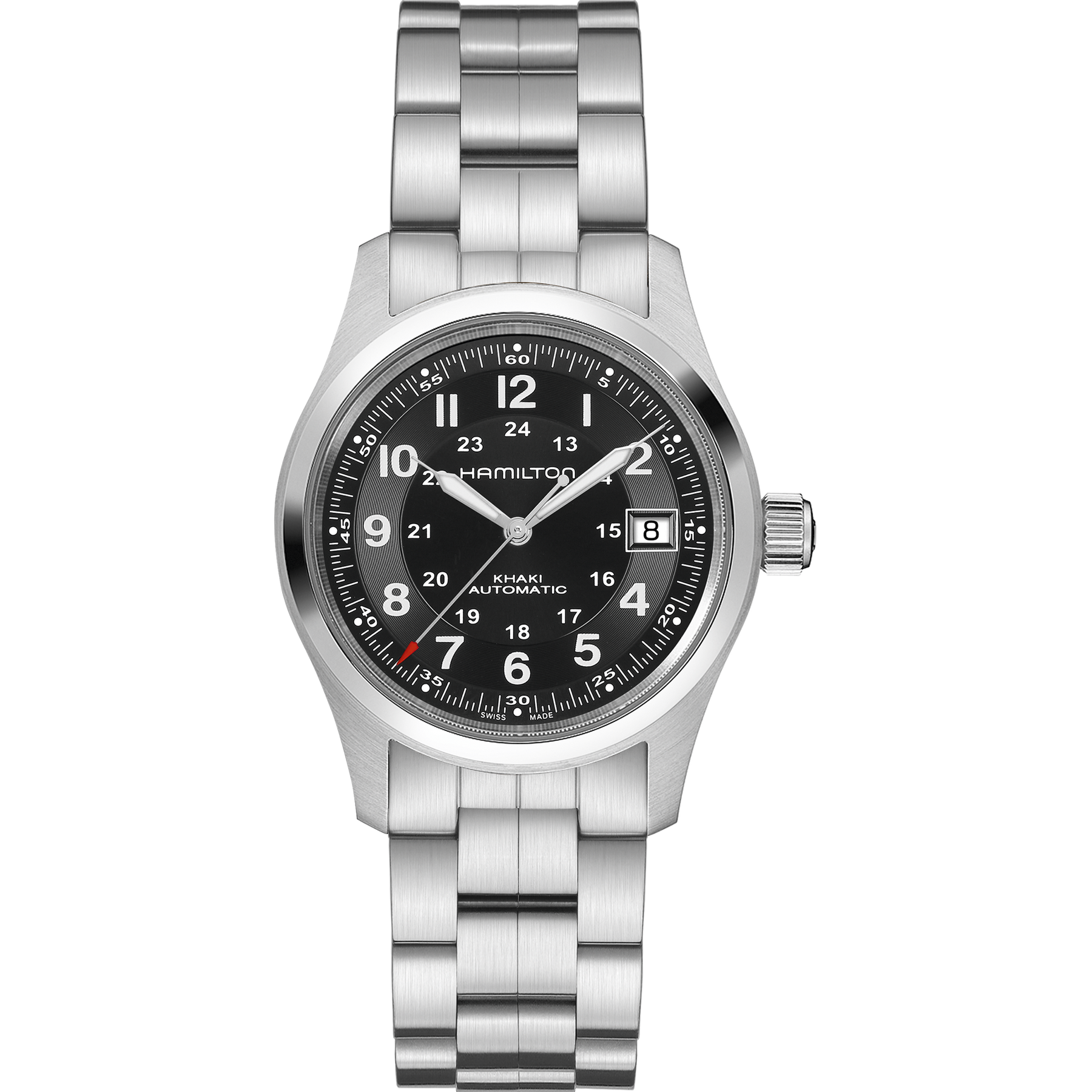 The Hamilton Khaki Field Auto 38 mm H70455133 is a classic military-inspired timepiece designed for those who value functionality, reliability, and timeless style. With its versatile 38 mm stainless steel case, this watch offers a comfortable fit that suits a wide range of wrist sizes, making it perfect for everyday wear. The black dial features bold white numerals and luminous hands, providing excellent legibility in any lighting condition. Built to handle outdoor adventures, this Khaki Field model offers 100 meters of water resistance, making it a dependable companion for hiking, travel, and daily activities.
