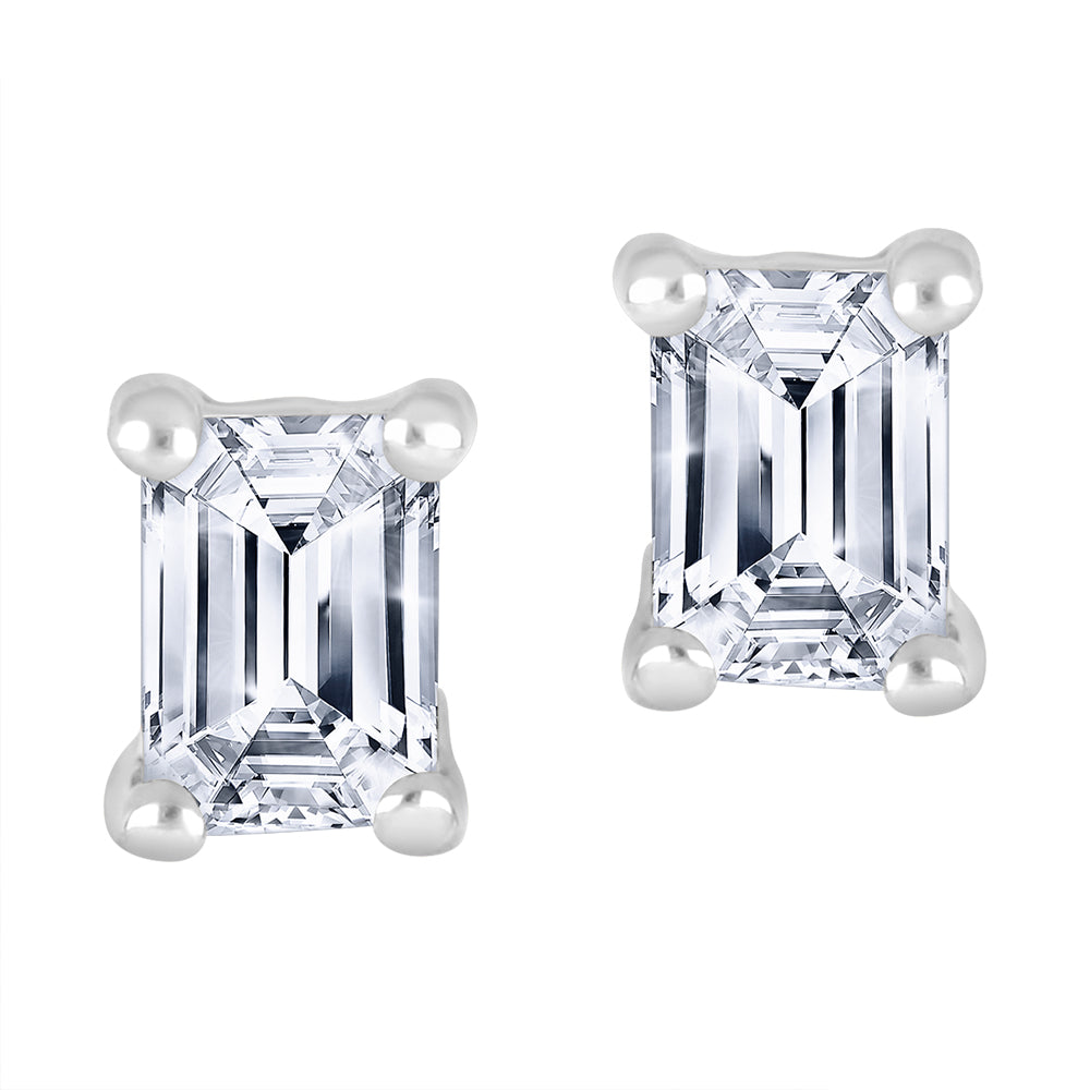 0.40 TCW Emerald-Cut Lab Diamond Stud Earrings in 10K White Gold