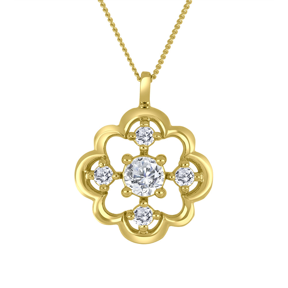 0.29 TCW Lab Diamond Floral Necklace in 10K Yellow Gold