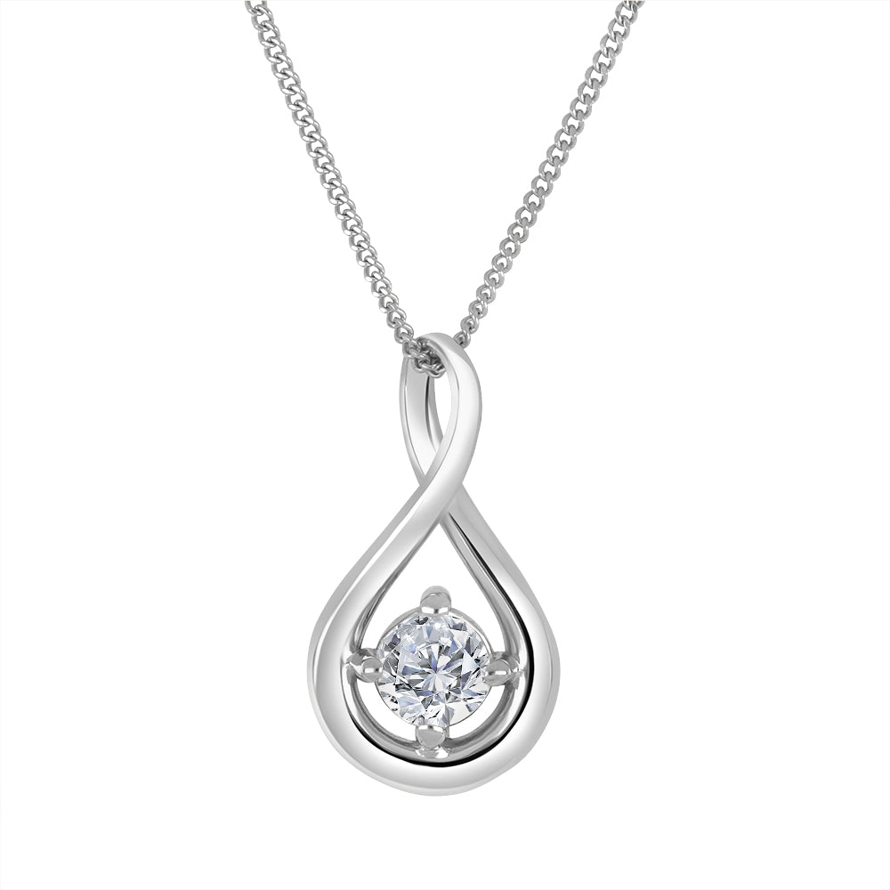 This exquisite 10K white gold necklace features a captivating infinity design, symbolizing eternal love and boundless elegance. At its center, a stunning 0.20 carat lab-grown diamond, with VS2 clarity and F colour, is securely set to catch the light with every movement.