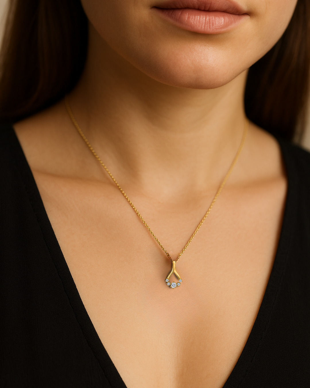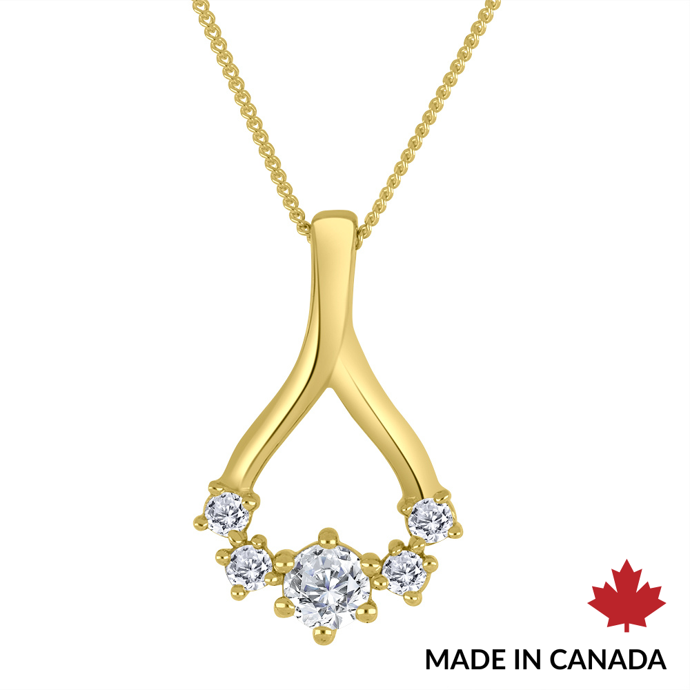 This elegant wishbone pendant is a perfect symbol of good luck and new beginnings. Crafted in 10K yellow gold, this beautiful necklace features five sparkling lab-grown diamonds that total 0.23 carat weight.