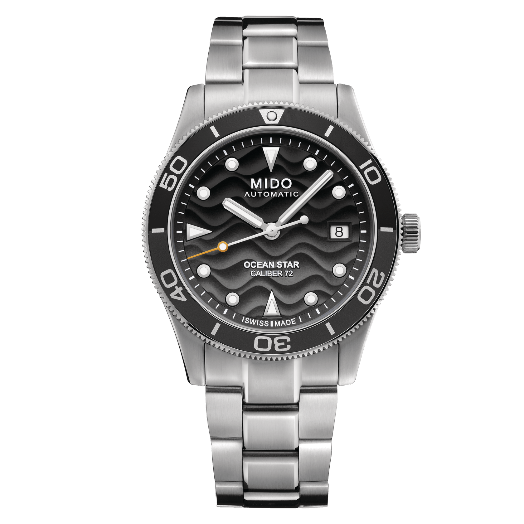 Powering this timepiece is the MIDO Caliber 72 automatic movement, based on the ETA A31.111, offering an impressive 72-hour power reserve. This movement incorporates a Nivachron™ balance spring, enhancing resistance to magnetic fields and shocks, thereby ensuring long-term precision and reliability. The watch also includes a date display at the 3 o'clock position, adding practicality to its elegant design. With a case thickness of 10.5 mm and a water resistance of up to 200 meters, it is suitable for both diving and daily wear.