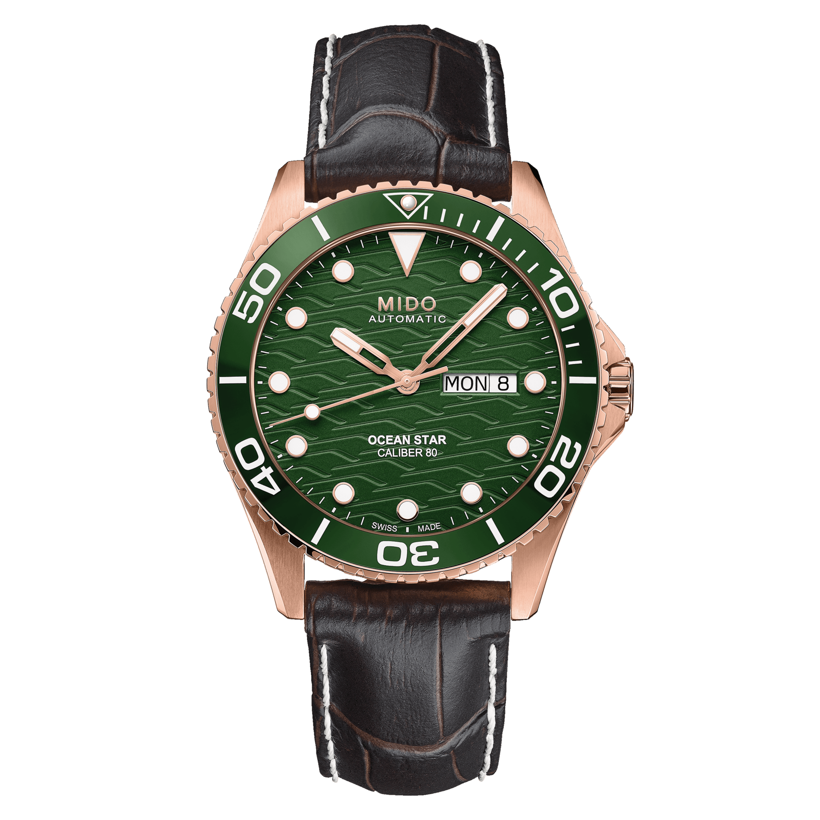 Powered by the MIDO Caliber 80 automatic movement, the Ocean Star 200C offers an impressive 80-hour power reserve, ensuring reliable accuracy for extended periods without winding. Built for underwater exploration, it boasts 200 meters of water resistance, a screw-down crown, and a sapphire crystal with anti-reflective treatment for maximum durability and clarity. The combination of a ceramic bezel and robust construction ensures long-lasting wear, whether for diving or everyday use.
