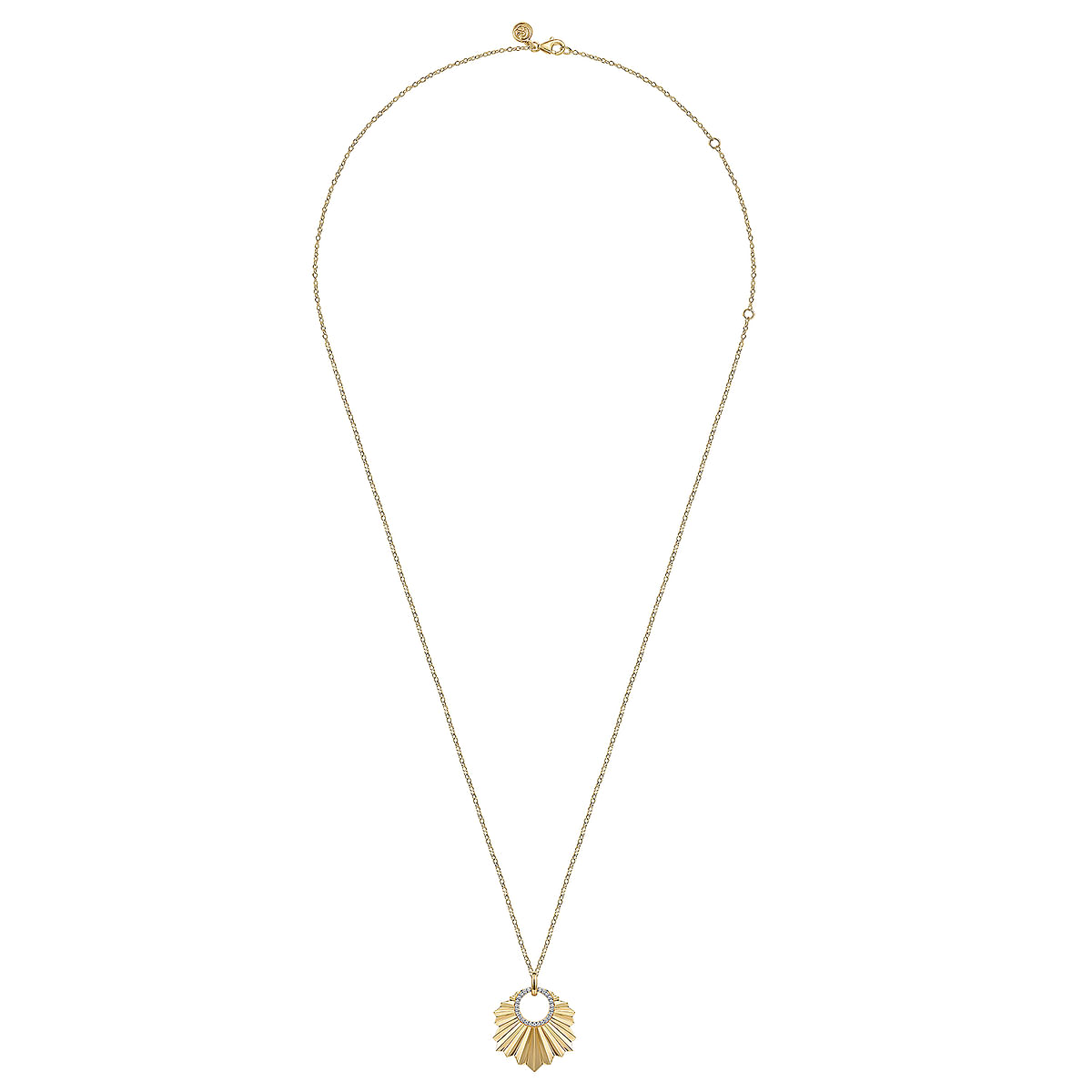 14K Yellow Gold Diamond Necklace With Diamond Cut Texture In Leaf Shape NK7262Y45JJ