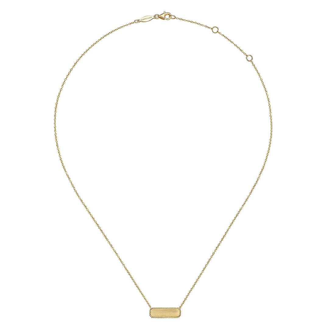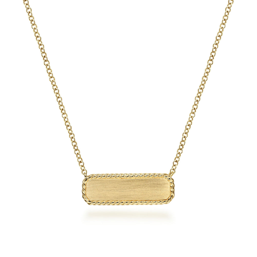 14K Yellow Gold Rectangular ID Pendant Necklace with Twisted Rope Frame NK6467Y4JJJ