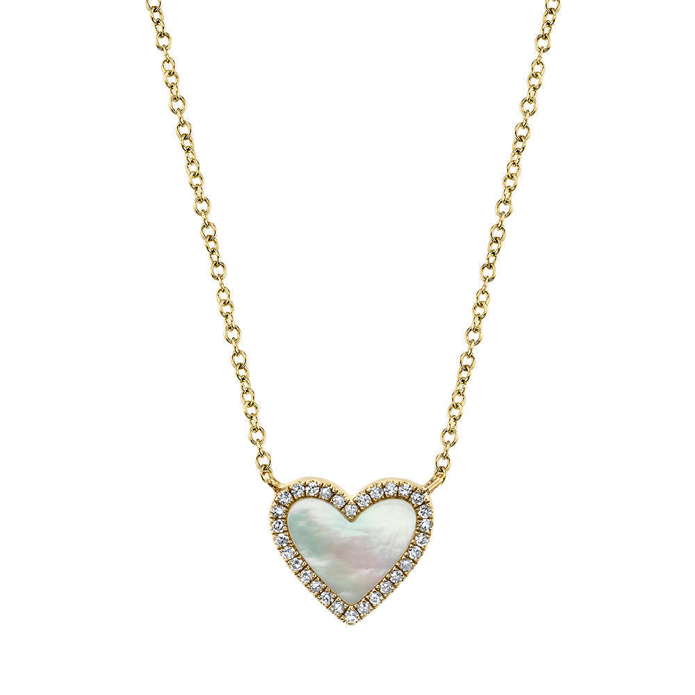 0.09 Ct Diamond & 0.56 Ct Mother of Pearl Heart Necklace SC55012462