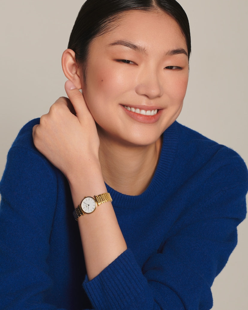 The Longines La Grande Classique 24 mm L4.209.2.11.8 is a stunning expression of traditional Swiss watchmaking, designed for women who favor refined elegance and timeless style. This model features a slim 24 mm stainless steel case with a luxurious yellow PVD coating, giving it a distinctive gold-toned finish. The crisp white dial is adorned with classic black Roman numerals and thin black hands, embodying the minimalist beauty that defines the La Grande Classique collection.