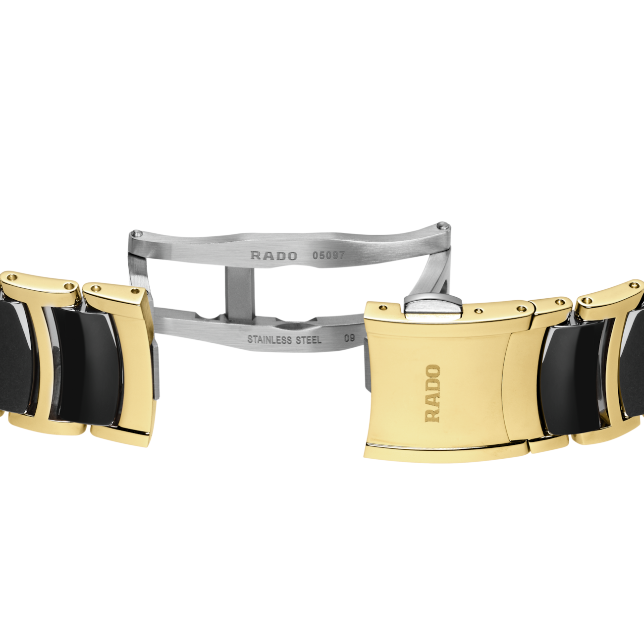 Powered by the precise Rado Caliber R763 automatic movement, the R30032742 offers an impressive 80-hour power reserve and enhanced accuracy thanks to its antimagnetic Nivachron™ hairspring. This watch is water-resistant up to 50 meters (5 bar), making it a versatile choice for everyday wear. The bracelet, crafted from a combination of high-tech ceramic and stainless steel with yellow gold PVD coating, delivers comfort and durability. It’s an excellent option for anyone looking for “durable luxury watches” or “high-end automatic women’s watches.”