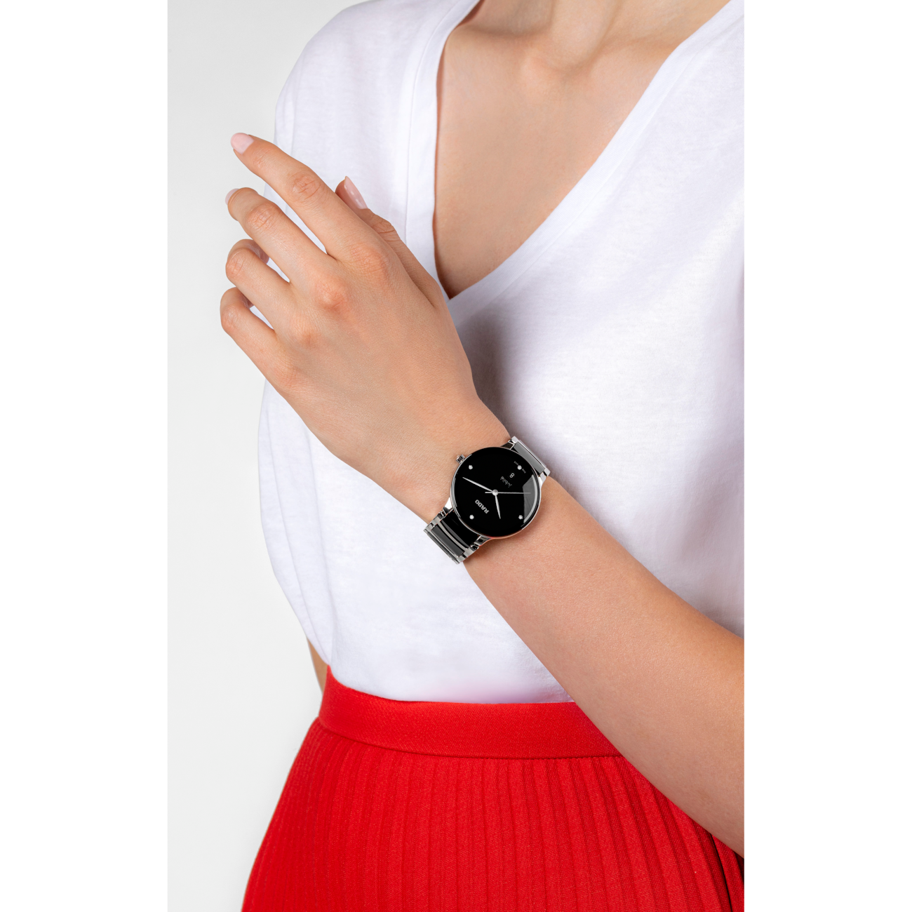 Powered by a precise Swiss quartz movement, the R30021712 offers reliable timekeeping and requires minimal maintenance. The watch’s stainless steel bracelet features Rado's signature high-tech ceramic elements, adding an element of modern sophistication and comfort. The ceramic links are lightweight, scratch-resistant, and smooth to the touch, enhancing the bracelet’s durability and making the watch a pleasure to wear. With water resistance suitable for daily wear, the Rado Centrix Quartz 39.5mm is both stylish and practical. Combining a contemporary design with advanced materials, this timepiece offers a timeless, refined look that suits a variety of occasions, making it a great choice for anyone looking for a versatile and sophisticated watch.