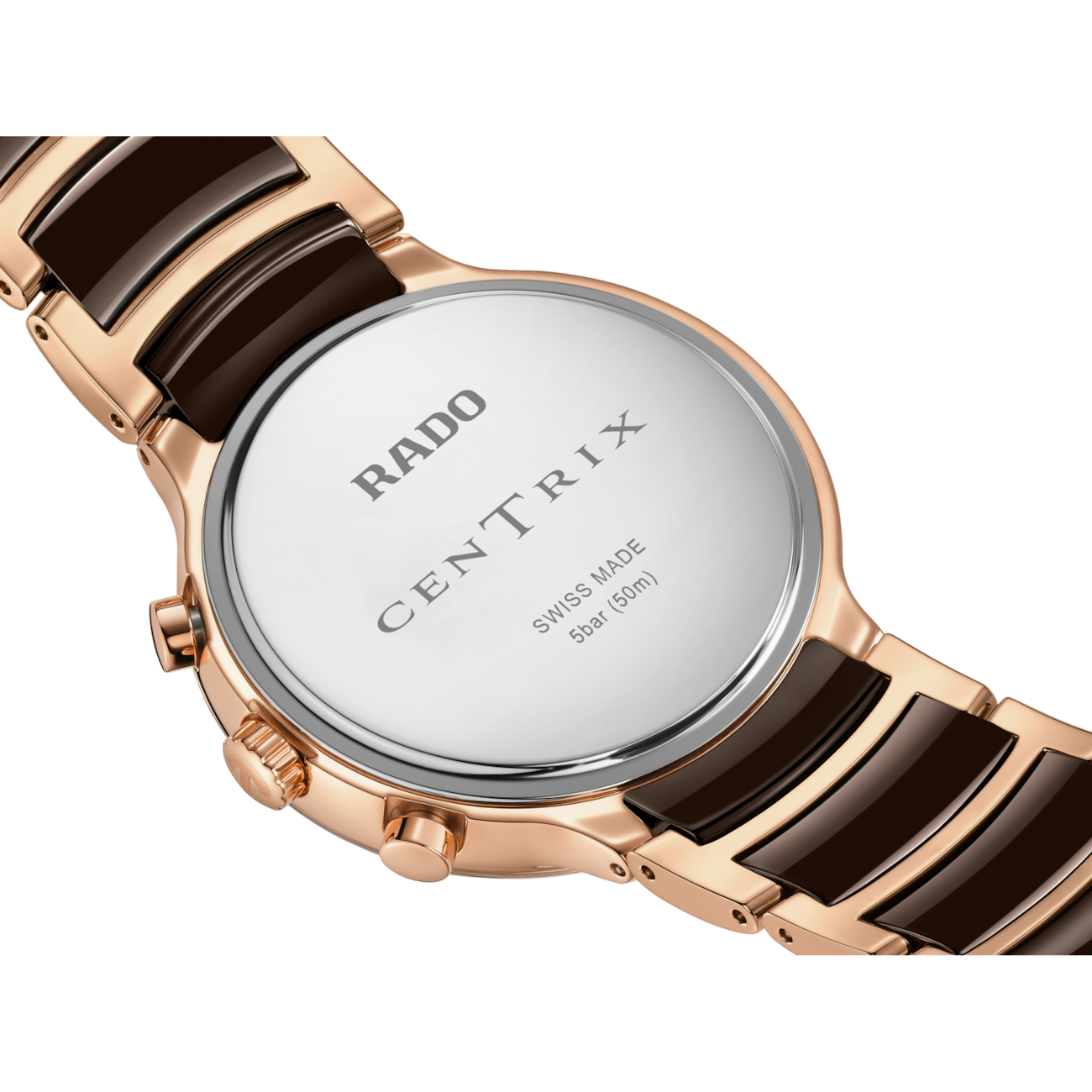 Powered by the precise Rado Caliber 504 quartz movement, the Rado Centrix Chronograph 41.0 mm R30212402 offers highly accurate timekeeping with minimal maintenance. The chronograph function enables precise measurement of elapsed time, making this watch perfect for those who require accuracy in timing activities. Quartz movements are known for their reliability, ensuring that the Rado Centrix Chronograph remains consistent and low-maintenance. With a water resistance of up to 50 meters (5 bar), this watch is also suitable for everyday wear, including light water exposure, such as washing hands or getting caught in the rain.