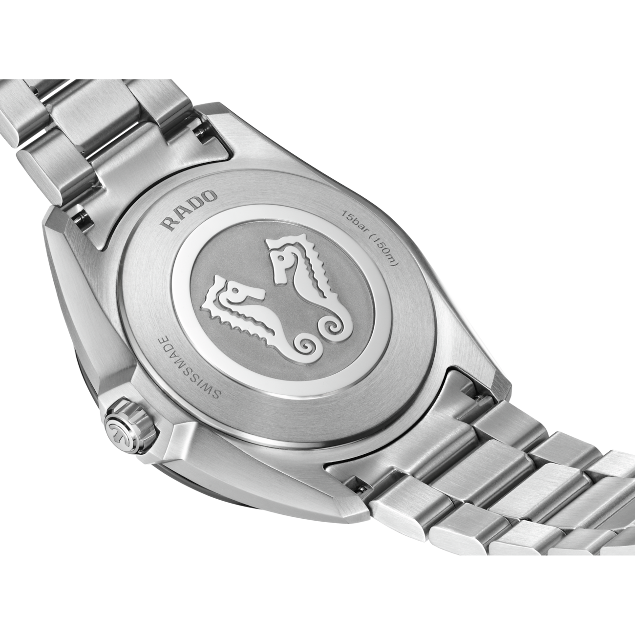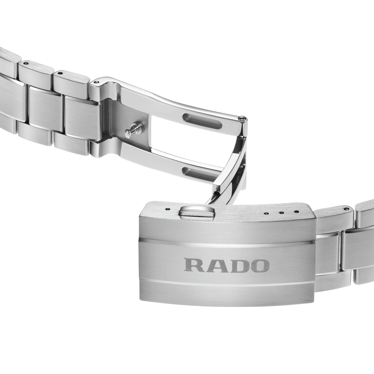 Powered by the reliable Rado Caliber 763 automatic movement, this watch provides accurate timekeeping and a power reserve of approximately 38 hours. The sapphire crystal with anti-reflective coating ensures durability and clarity, protecting the dial from scratches. With water resistance up to 100 meters, it’s suitable for everyday wear and light water activities.
