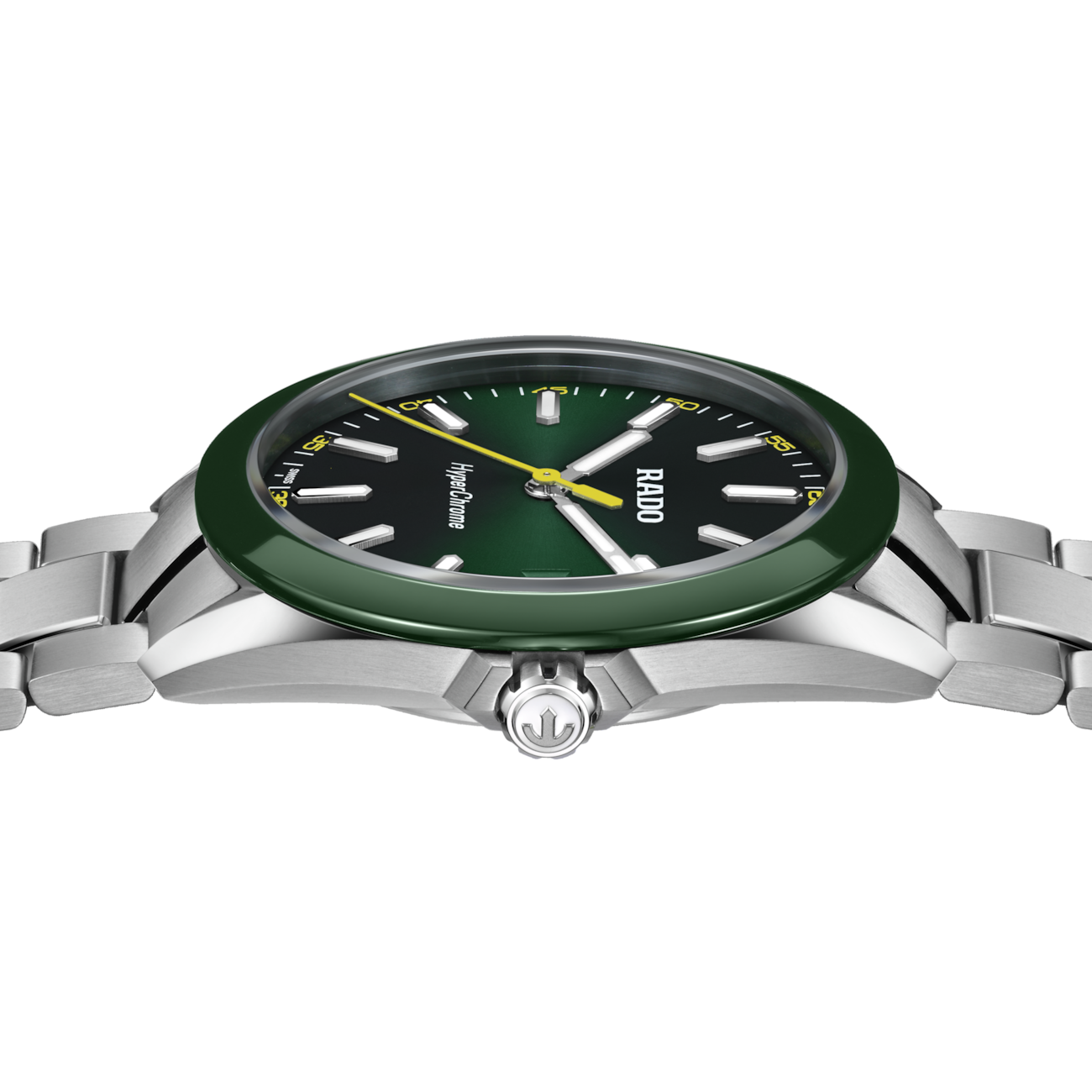 Powered by the Rado Caliber 763 automatic movement, the Rado HyperChrome 41.5 mm R32280313 delivers accurate timekeeping with a 38-hour power reserve. This watch is designed for those who seek reliable performance without sacrificing style. The Nivachron™ hairspring, included in the movement, ensures superior resistance to magnetic fields, offering enhanced precision even in challenging environments. With a water resistance of up to 100 meters (10 bar), the Rado HyperChrome is perfect for daily wear, light swimming, and other water-related activities, making it both a stylish and practical choice for active individuals.