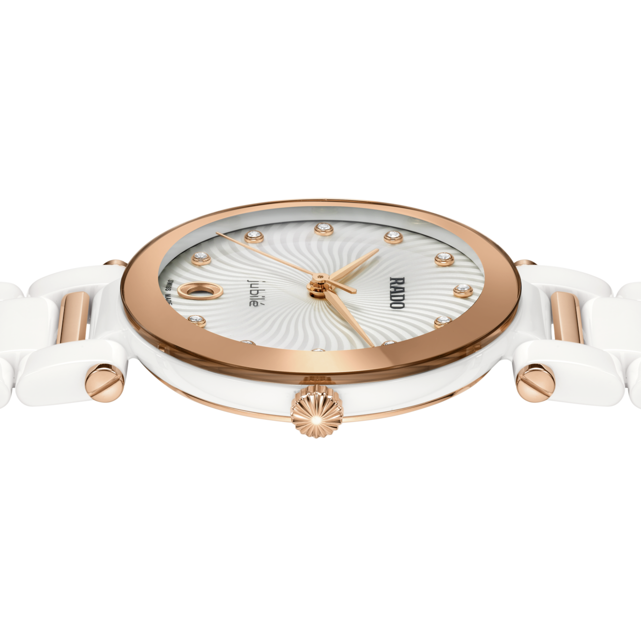 The Rado LaCoupole Diamonds 31 mm R22240703 is a testament to Rado's commitment to combining style and Swiss craftsmanship. Its sapphire crystal with anti-reflective coating ensures that the dial remains clear and scratch-resistant, preserving its beauty over time. Whether you're looking for a timepiece to complement your everyday look or to mark a special occasion, this watch offers the perfect mix of durability, elegance, and precision. With its luxurious diamond accents and impeccable design, the Rado LaCoupole Diamonds 31 mm R22240703 is a timeless addition to any watch collection.