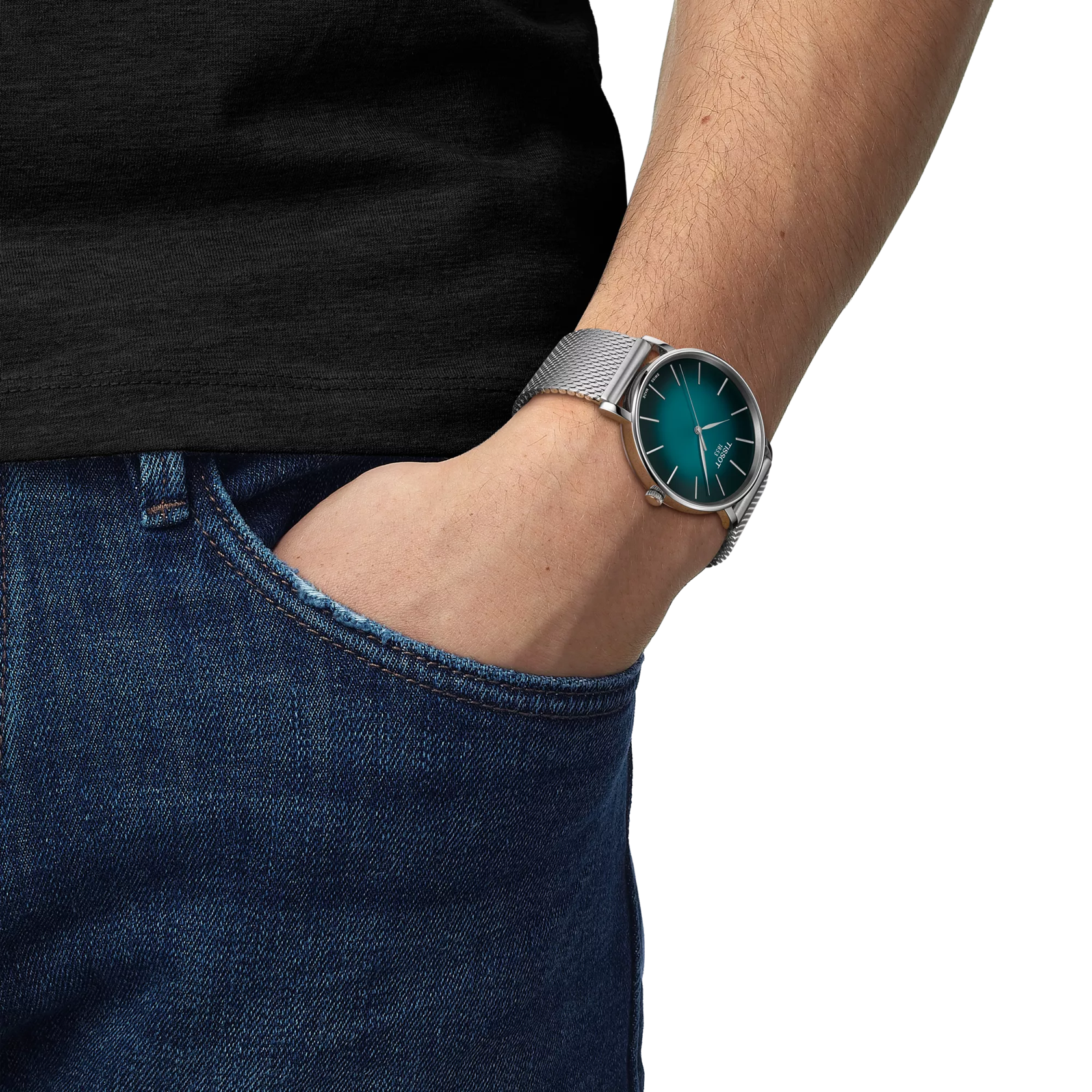 The Tissot Everytime 40mm T1434101109100 is a refined unisex timepiece that embodies minimalist elegance and Swiss precision. Part of Tissot's T-Classic collection, this watch features a 40 mm 316L stainless steel case and a graded green-black dial, offering a modern and versatile aesthetic. The dial is protected by a scratch-resistant sapphire crystal, ensuring durability and clarity. With its understated design, the Tissot Everytime 40mm is suitable for various occasions, from casual outings to formal events.