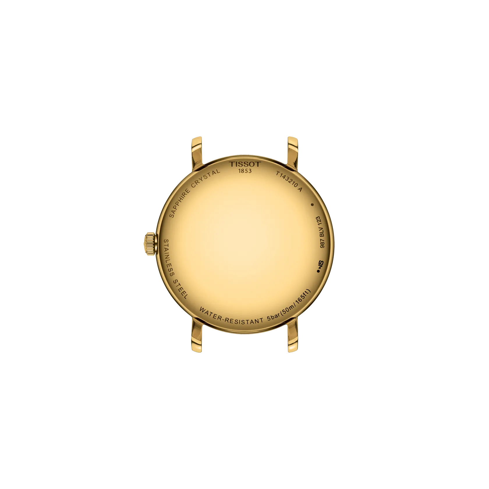 The Tissot Everytime 40mm T1434103302100 is the perfect choice for individuals seeking a sophisticated, reliable, and versatile timepiece. Its classic design, combined with Swiss craftsmanship, ensures long-lasting appeal and accuracy. Whether you're at a business meeting, social event, or enjoying a casual day out, this watch effortlessly complements any look. The yellow gold PVD-coated stainless steel bracelet adds a touch of luxury, while the jewelry clasp with safety closure ensures secure wear. With its blend of elegance and functionality, the Tissot Everytime 40mm is a must-have for anyone who values timeless design and Swiss quality.