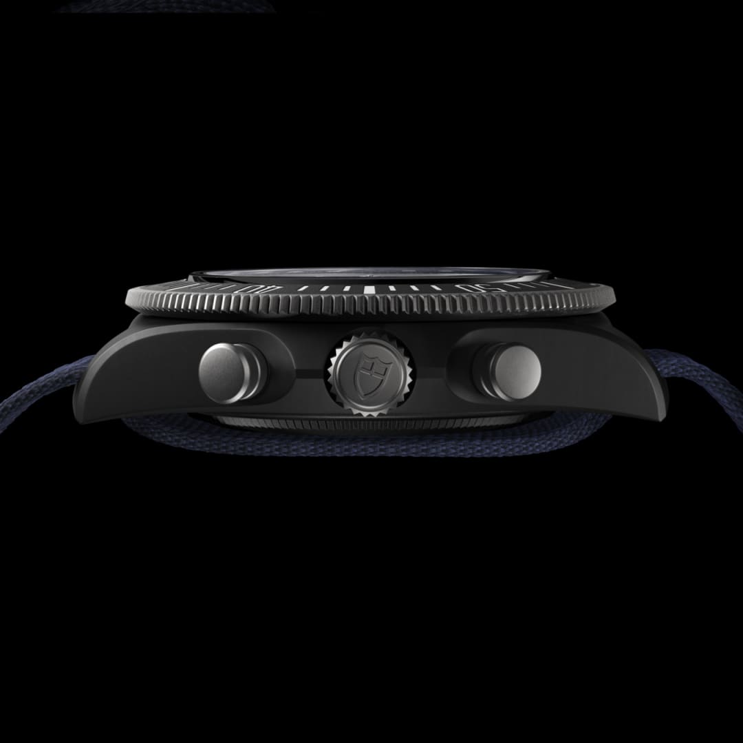 Designed with military and professional divers in mind, the TUDOR Pelagos FXD Chrono M25807KN-0001 is engineered for extreme underwater expeditions. It features a fixed (FXD) 60-minute bidirectional bezel with a luminous ceramic insert, allowing for precise dive time tracking. With a water resistance of 200 meters (660 feet), this watch is built to withstand intense marine conditions. The screw-down pushers and crown ensure additional protection, making it highly reliable even in the toughest environments. The highly comfortable fabric strap, designed for secure wear over wetsuits, enhances its practical functionality.