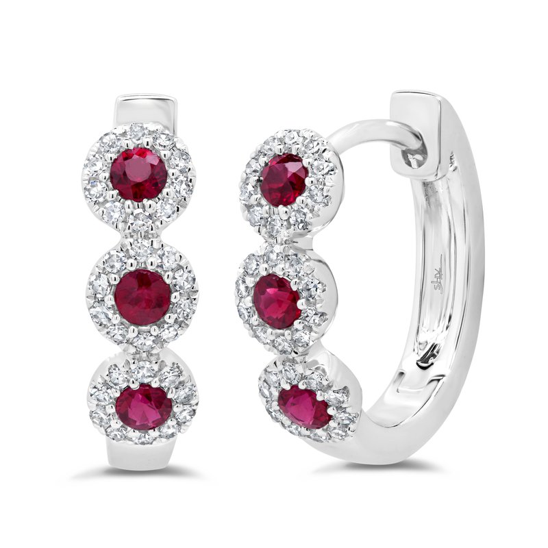 0.15 Ct Diamond & 0.29 Ct Ruby 14K White Gold Huggie Earring SC55002955