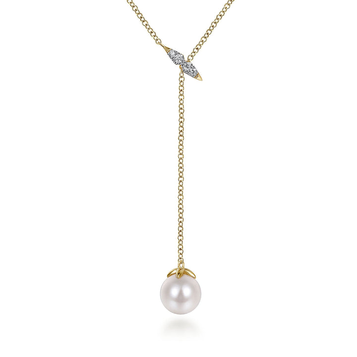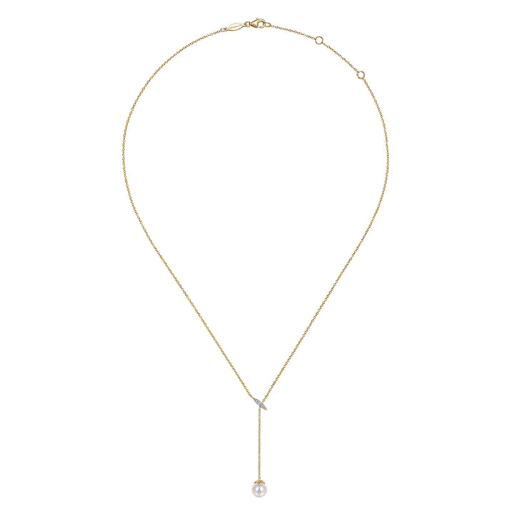 Versatile in style, this necklace can be worn alone for a sophisticated look or layered with other pieces for a trendy, layered effect. The secure clasp ensures a comfortable fit, allowing you to wear it with confidence throughout the day. Reflecting Gabriel & Co.'s dedication to exceptional craftsmanship, this diamond and pearl Y-knot necklace is a timeless addition to any jewelry collection. Whether you’re treating yourself or looking for the perfect gift, this piece is sure to impress and become a cherished favorite.