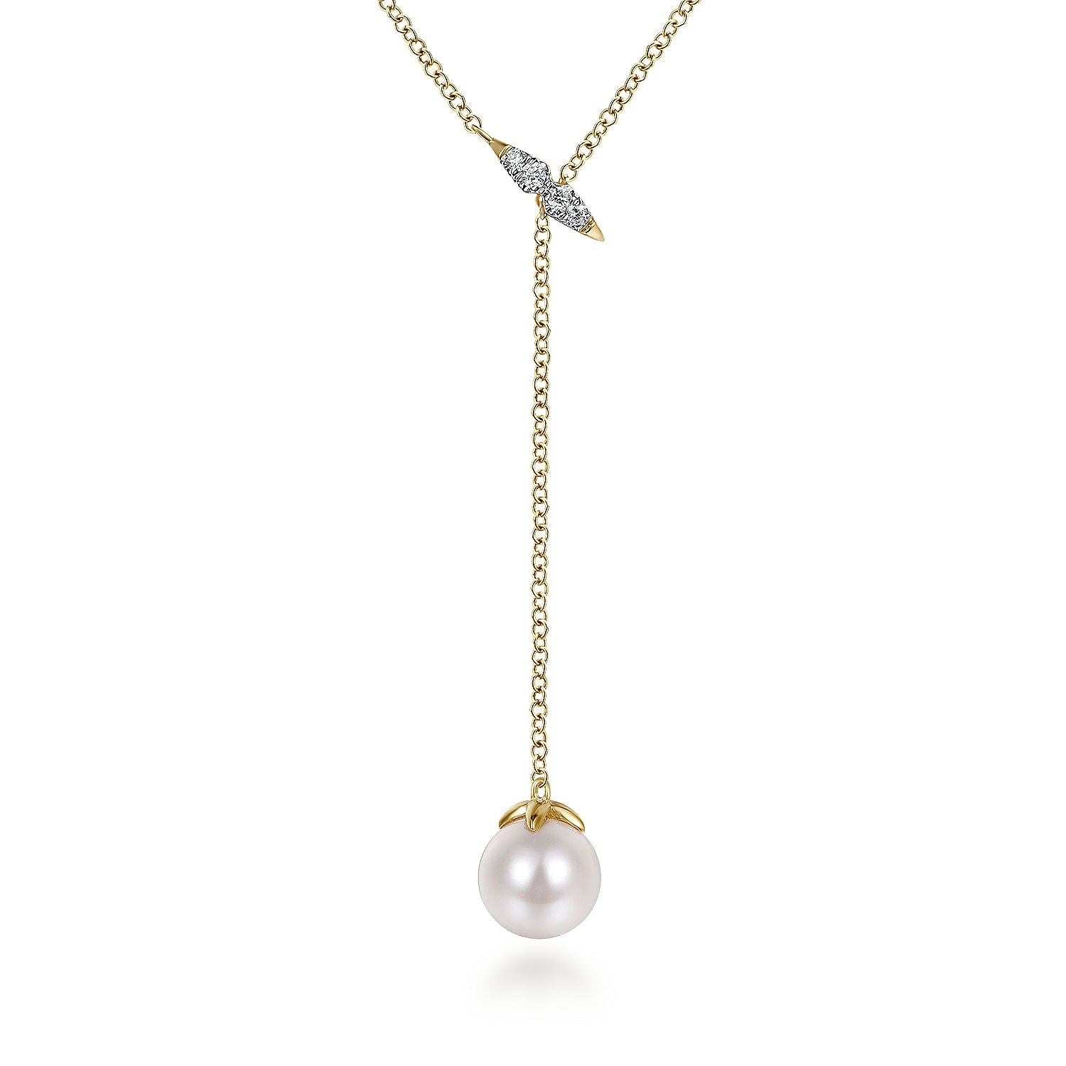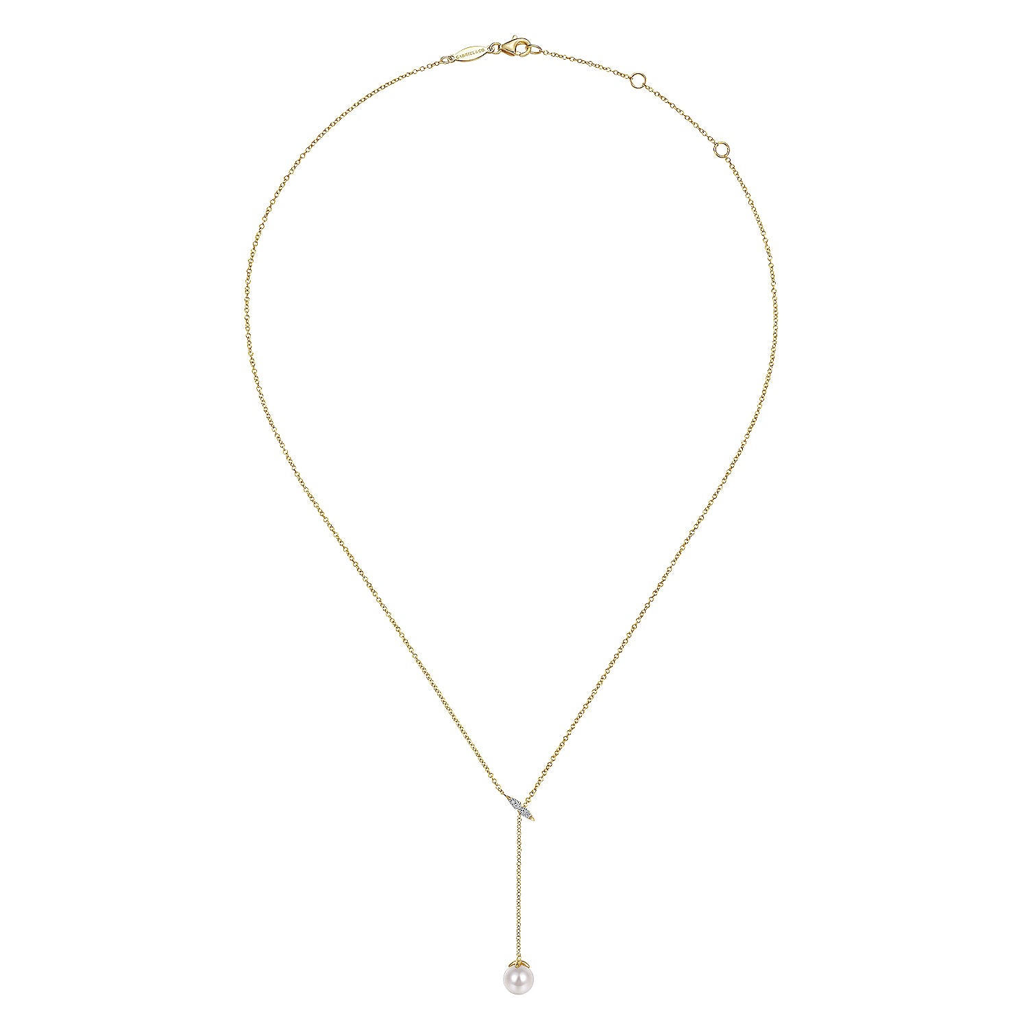 14K Yellow Gold Diamond And Pearl Y Knot Necklace NK5963Y45PL
