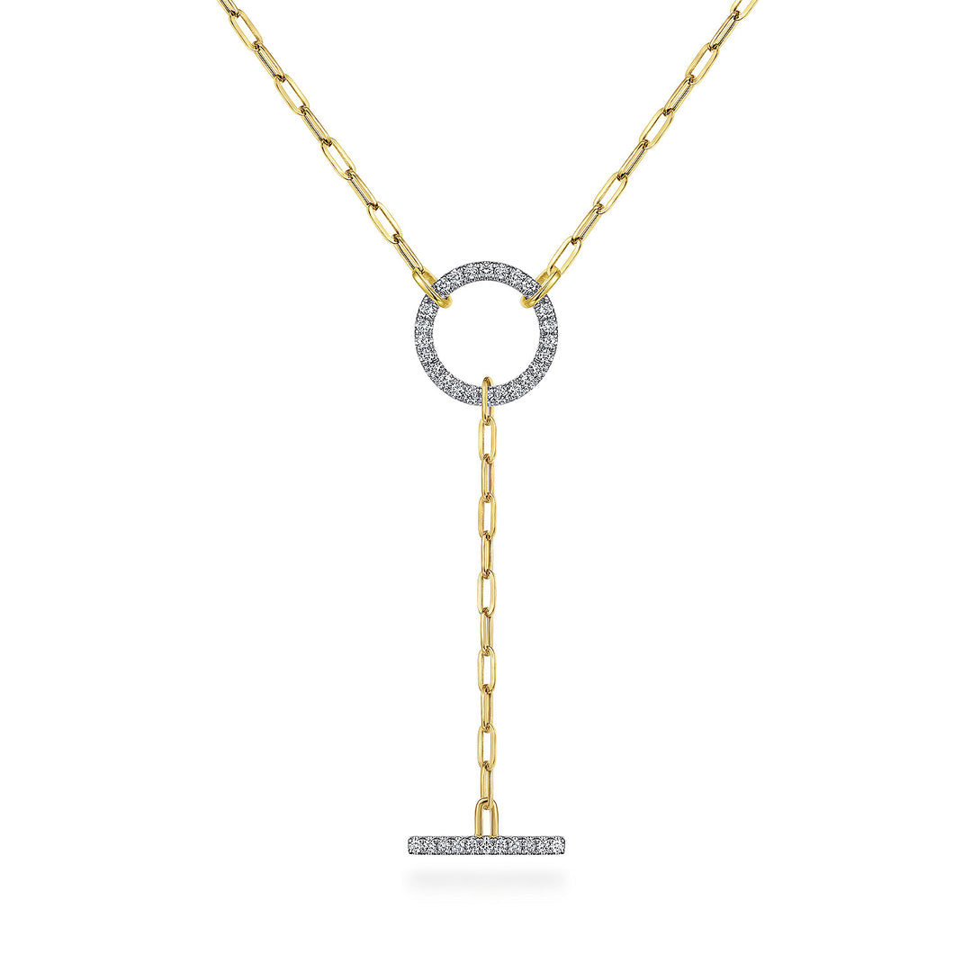 14K Yellow Gold Diamond Circle and Bar Y-Knot Necklace with Hollow Paperclip Chain NK7130Y45JJ