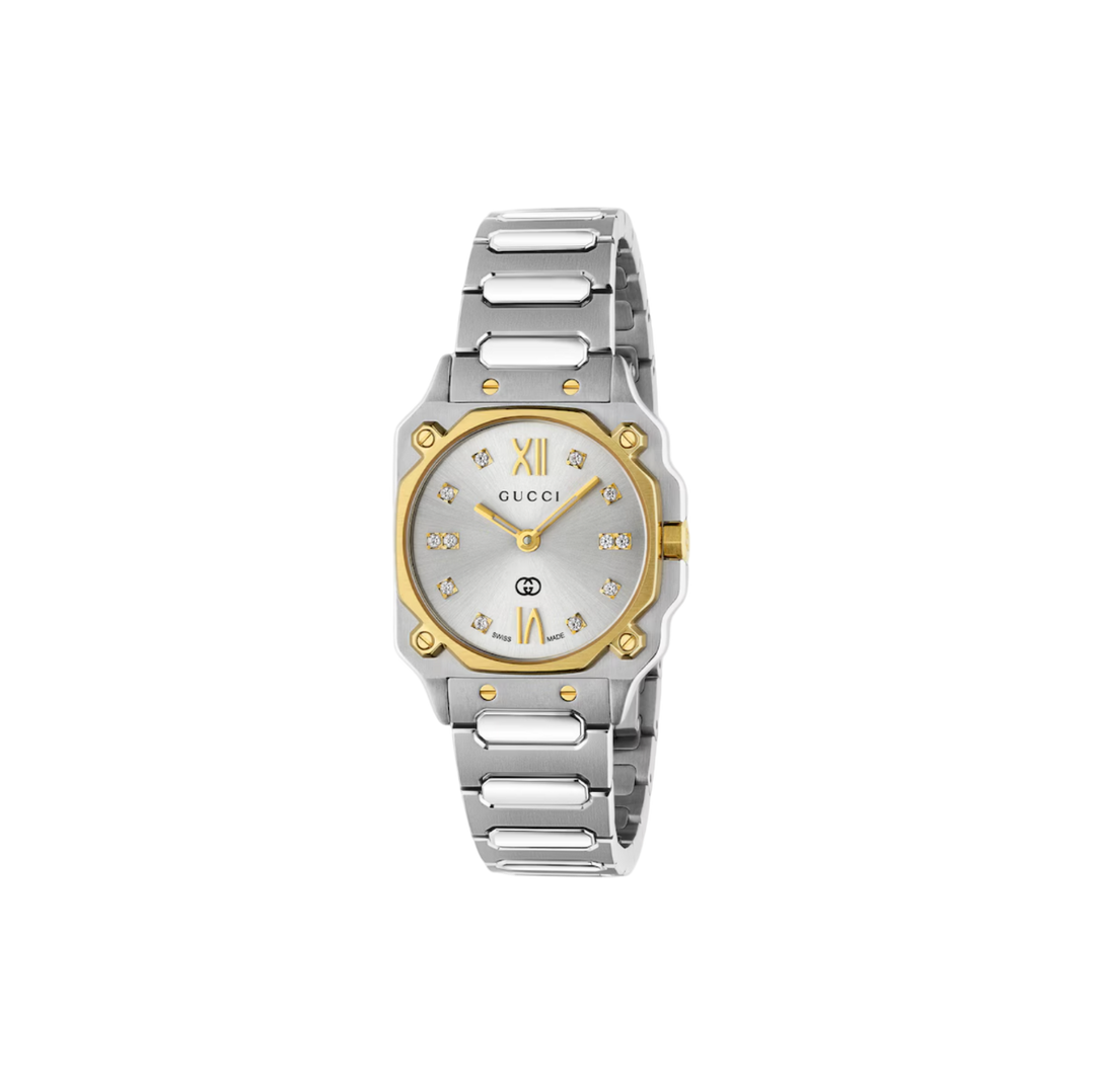 The Gucci G-Flat 24mm YA166503 is powered by a reliable quartz movement, providing accurate timekeeping with minimal maintenance. Though it is a more fashion-forward piece than a tool watch, it still offers practical features, including basic water resistance, suitable for daily wear and light exposure to water. Whether you’re looking for a subtle piece for everyday use or a special addition to your collection, the G-Flat represents the perfect fusion of Gucci’s high-end design with an easy-wearing, versatile style. This watch embodies both the chic elegance of the brand and a modern sensibility, making it a standout option for those who appreciate quality and beauty in a more minimalist form.