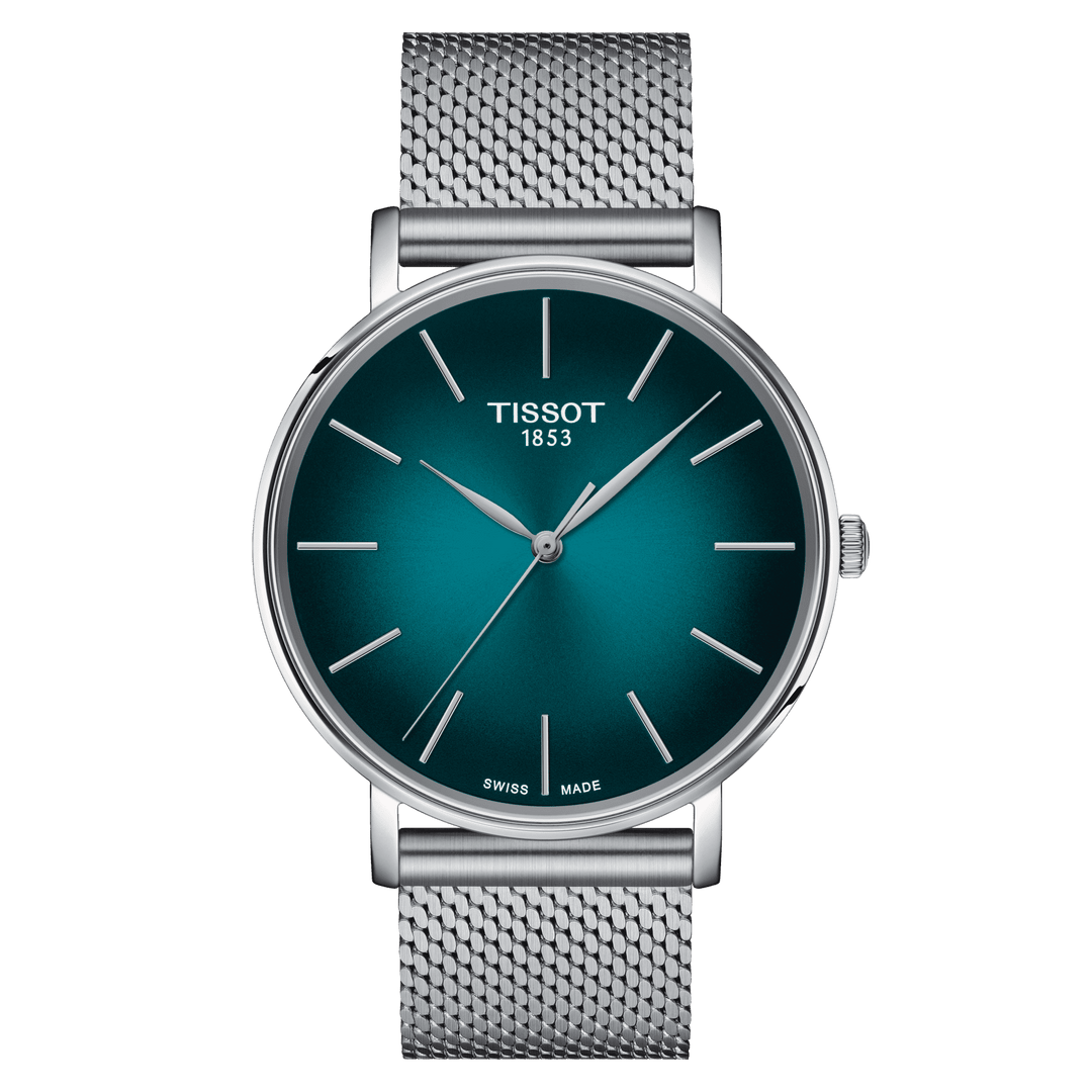 The Tissot Everytime 40mm T1434101109100 is a refined unisex timepiece that embodies minimalist elegance and Swiss precision. Part of Tissot's T-Classic collection, this watch features a 40 mm 316L stainless steel case and a graded green-black dial, offering a modern and versatile aesthetic. The dial is protected by a scratch-resistant sapphire crystal, ensuring durability and clarity. With its understated design, the Tissot Everytime 40mm is suitable for various occasions, from casual outings to formal events.