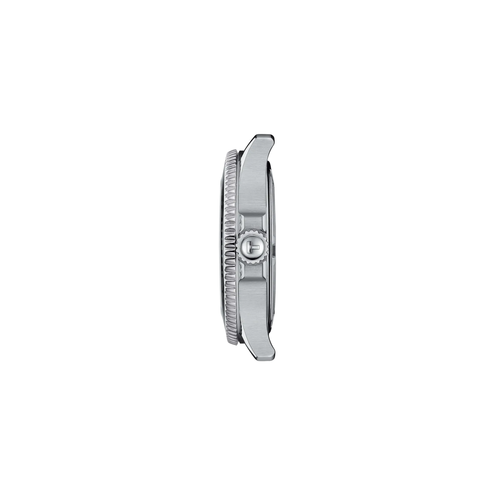 The Tissot Seastar 1000 36mm T1202101105100 is a compact yet robust Swiss-made dive watch designed for those who appreciate precision and style in a more wearable size. With a 36mm 316L stainless steel case and a thickness of just 9.67mm, it offers a sleek profile that comfortably fits smaller wrists. The watch features a scratch-resistant sapphire crystal with double-sided anti-reflective coating, ensuring durability and clarity under various lighting conditions. Its unidirectional rotating bezel and screw-down crown and caseback enhance water resistance, making it suitable for diving and other aquatic activities.