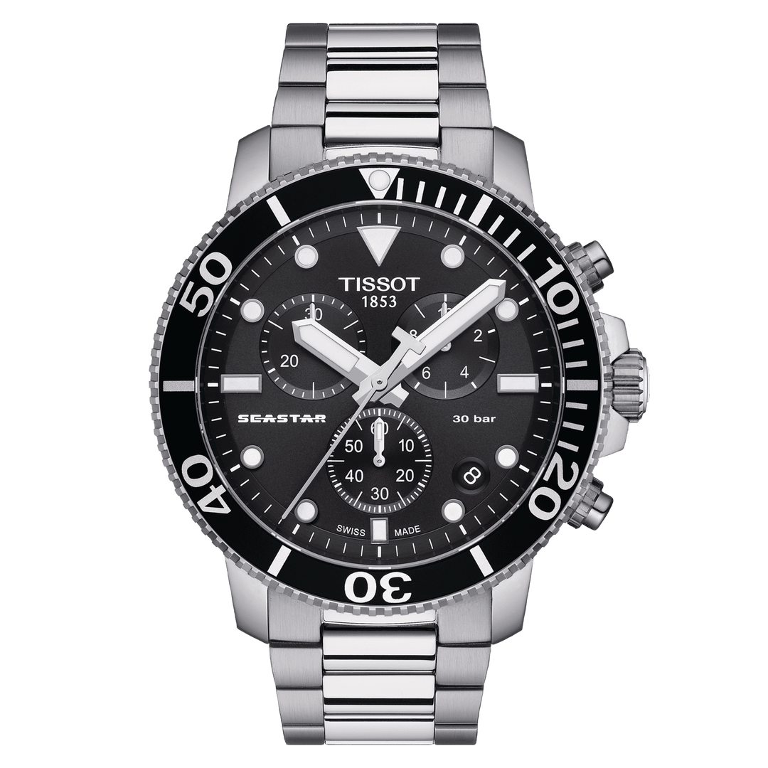 In addition to its impressive functionality, the Tissot Seastar 1000 Chronograph 45.50 mm T1204171105100 also boasts a stylish and comfortable design. The stainless steel bracelet features a secure deployment clasp, providing a snug and secure fit on the wrist. The scratch-resistant sapphire crystal ensures the dial remains pristine for years, while the ceramic bezel adds a modern touch of sophistication. Whether you're exploring the ocean depths or attending a formal event, this timepiece blends sport and elegance, making it a must-have for anyone who values both aesthetics and performance in their watch collection.