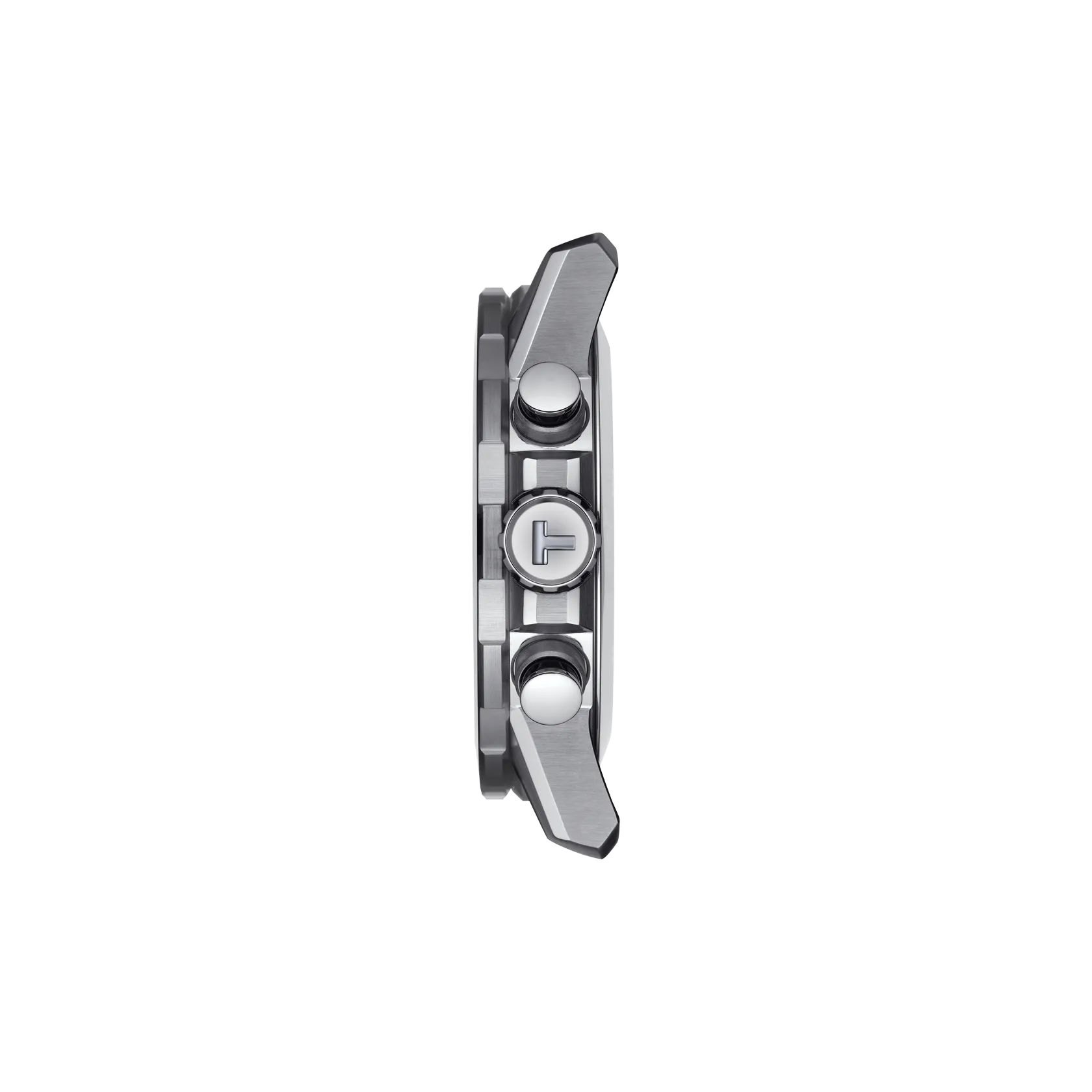 The Tissot Supersport Chrono 45.50 mm (T1256171705103) is a dynamic Swiss-made timepiece that seamlessly combines sporty aesthetics with advanced functionality. Encased in a robust 45.5 mm 316L stainless steel case, this chronograph features a scratch-resistant sapphire crystal and an aluminum bezel ring, ensuring durability and clarity. The black dial is complemented by Super-LumiNova®-coated hands and indexes, providing excellent legibility in low-light conditions. With a water resistance of up to 100 meters (10 bar), the Supersport Chrono is suitable for various water activities, making it a versatile choice for active individuals.